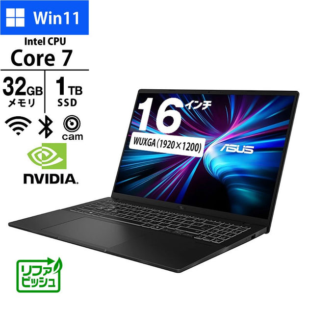 ノートパソコン ASUS 16型 WUXGA Gaming V16 V3607VM-C7161R5060W Core 7 240H メモリ32GB SSD1TB 無線LAN Webカメラ RTX5060 Windows11 Home リファビッシュ ゲーミング PC 2025年モデル