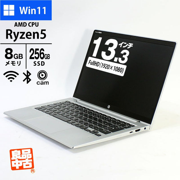 ノートパソコン HP 13.3型 フルHD ProBook 635 Aero G8 37Z91AV Ryzen5 5600U メモリ8GB SSD256GB 無線LAN Webカメラ 指紋センサー Windows11 Pro 良品中古 2021年モデル