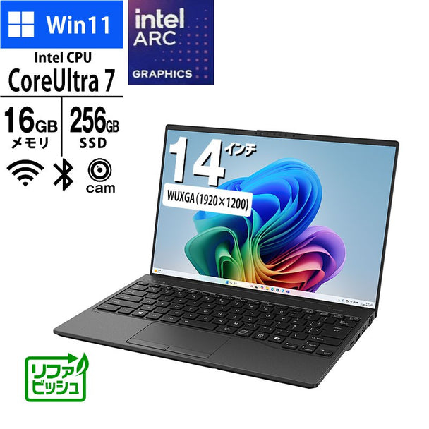 ノートパソコン 富士通 14型 WUXGA FMV WU1-K1 FMVUH06001 Core Ultra7 256V メモリ16GB SSD256GB 無線LAN Webカメラ Windows11 Home リファビッシュ Copilot+ PC 2025年モデル