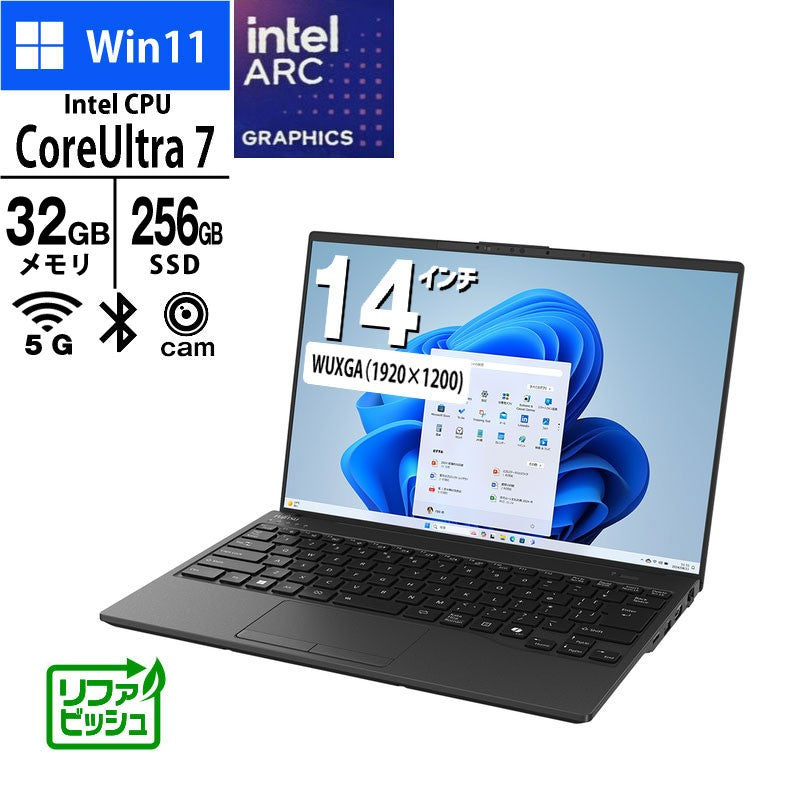 ノートパソコン 富士通 14型 WUXGA LIFEBOOK WU2/J3 FMVUH03005 Core Ultra7 155H メモリ32GB SSD256GB 無線LAN 5G LTE Webカメラ Windows11 Home リファビッシュ PC ピクトブラック 軽量 薄型 2024年モデル