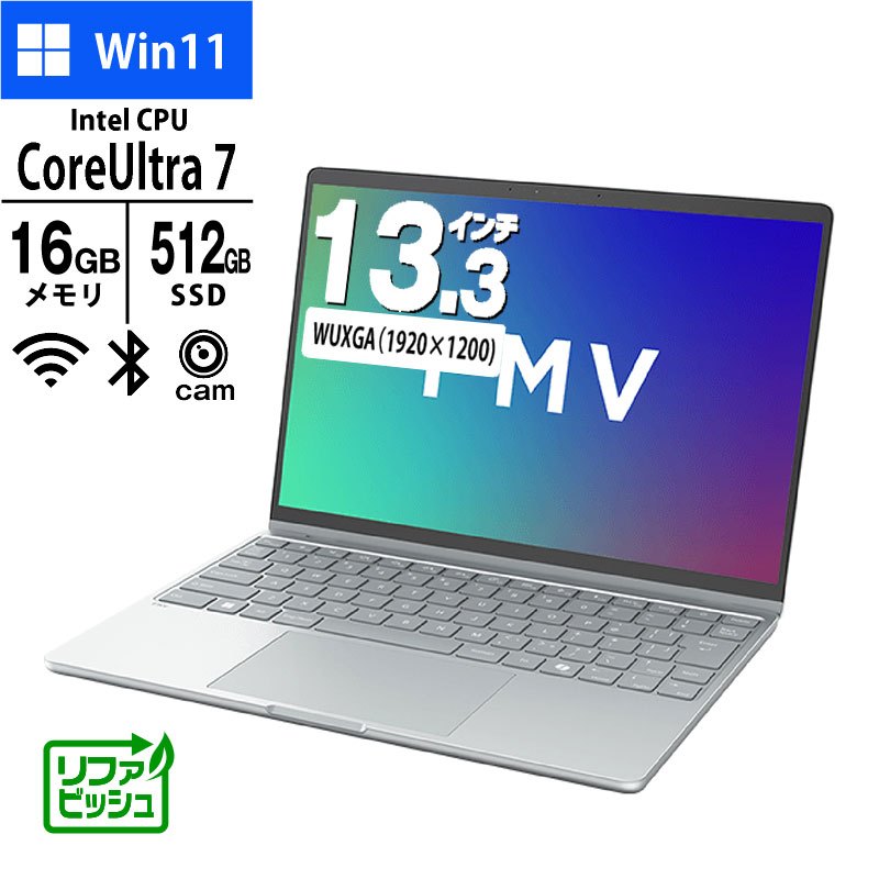 ノートパソコン 富士通 13.3型 WUXGA FMV Note C WC1-K1 FMVCH03001 Core Ultra7 164U メモリ16GB SSD512GB 無線LAN Webカメラ Windows11 Home リファビッシュ PC 2025年モデル