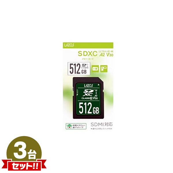 Lazos SDXC メモリーカード V30 A2 シリーズ 512GB [L-B512SD10-U3V30A2] UHS-I U3 SDMI対応 3点セット