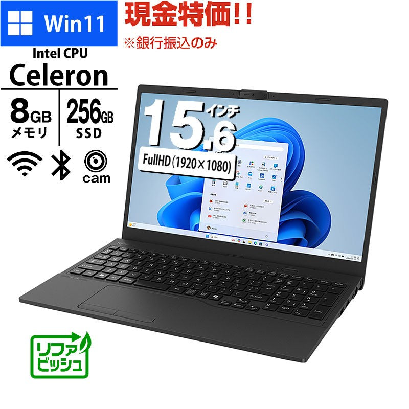 現金特価 ノートパソコン 富士通 15.6型 フルHD LIFEBOOK WA1/J2 FMVWJ2A112 Celeron 7305 メモリ8GB SSD256GB 無線LAN テンキー Webカメラ Windows11 Home Office無し リファビッシュ 2024年モデル
