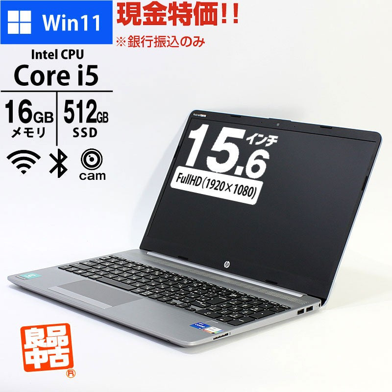 現金特価 ノートパソコン HP 15.6型 フルHD 250 G8 Notebook PC 508M3AV Core i5-1135G7 メモリ16GB SSD512GB 無線LAN Webカメラ テンキー 指紋センサー Windows11 Pro 良品中古 2021年モデル