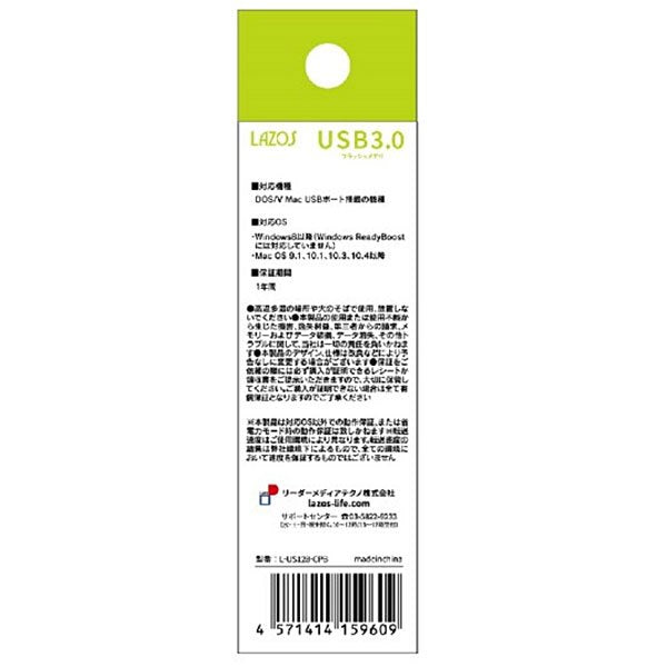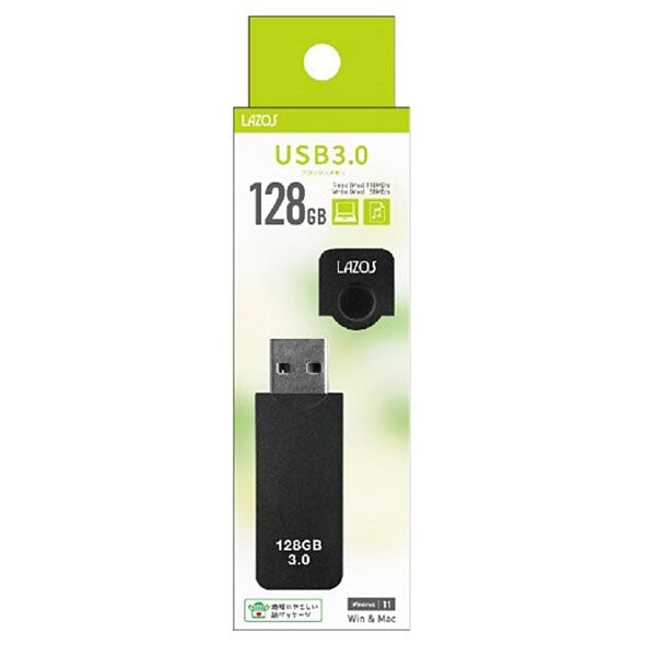 Lazos 128GB キャップ式USBフラッシュメモリ [L-US128-CPB] USB3.0接続 ブラック 5点セット