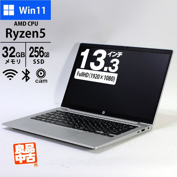 ノートパソコン HP 13.3型 フルHD ProBook 635 Aero G7 340X8PA#ABJ Ryzen5 4500U メモリ32GB SSD256GB 無線LAN Webカメラ 指紋センサー Windows11 Pro 良品中古 2020年モデル