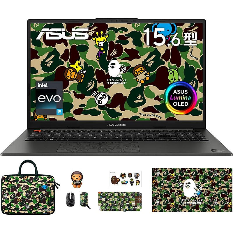 ノートパソコン ASUS 15.6型 OLED Vivobook S 15 OLED BAPE Edition ミッドナイトブラック K5504VA-MA262W Core i9-13900H メモリ16GB SSD1TB 無線LAN Webカメラ Windows11 Home リファビッシュ PC 2023年モデル