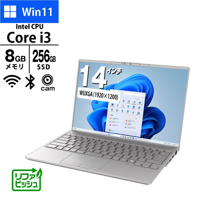ノートパソコン 富士通 14型 WUXGA LIFEBOOK WU2/J3 FMVUH04001 Core i3-1315U メモリ8GB SSD256GB 無線LAN Webカメラ Windows11 Home リファビッシュ PC フロストグレー 軽量 薄型 2024年モデル