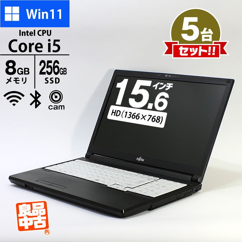 5台セット ノートパソコン 富士通 15.6型 LIFEBOOK A5511/G FMVA86001 Core i5-1145G7 メモリ8GB SSD256GB DVD ROM 無線LAN テンキー Windows11 Pro 良品中古 PC 2021年モデル