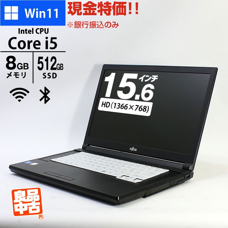 現金特価 ノートパソコン 富士通 15.6型 LIFEBOOK A5513/M FMVA0B006 Core i5-1235U メモリ8GB SSD512GB DVD-ROM 無線LAN Windows11 Pro 良品中古 PC 2023年モデル